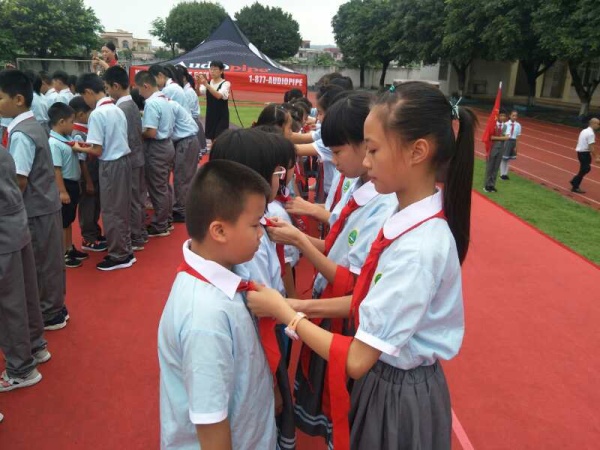 通過這次新少先隊員的入隊儀式,壯大了少先隊的隊伍,同時在儀式中也使老少先隊員們受到潛移默化的影響與教育,懂得了當一名少先隊員所肩負的光榮使命,使新少先隊員們在心靈上感受了先進力量的無尚光榮與自豪,時刻準備著為偉大的共產(chǎn)主義事業(yè)貢獻一切力量。