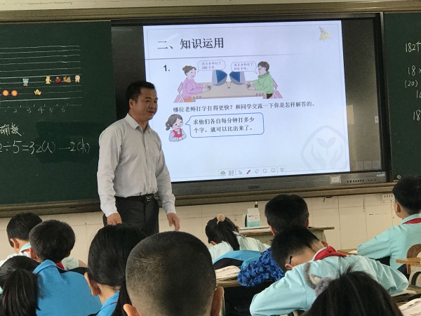 活動首先由梁鎮(zhèn)輝老師帶領三(1)班的孩子上了一節(jié)精彩的《用除法估算解決問題》,讓學生經(jīng)歷在具體的情境中用估算解決問題的過程,經(jīng)歷解決問題的過程,學會簡單的、有條理的思考,能夠靈活選擇合適的計算方法解決簡單實際問題。課堂以具體的情境圖引入,創(chuàng)設機會學生說說圖意及發(fā)現(xiàn)的數(shù)學信息和問題,讓學生充分理解題意后再解答,例題分析中,重點引導學生理解“夠裝”的含義,采用小組合作的學習方式讓學生共同探討,集思廣益。再選擇合適的估算方法,讓學生充分體會了解決問題策略的多樣性。