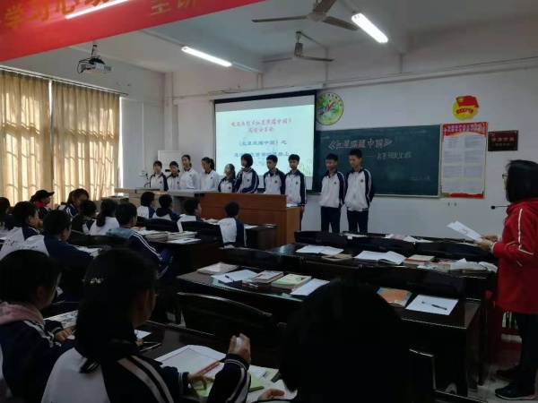 教研活動首先由牛角中學(xué)易曉軍老師執(zhí)教《紅星照耀中國》名著閱讀課。經(jīng)過充分的準(zhǔn)備,在學(xué)生深入閱讀的基礎(chǔ)上,易曉軍老師創(chuàng)造性地為我們呈現(xiàn)了一堂以學(xué)生為主體的名著閱讀匯報課。易老師緊緊抓住“將厚的書都薄,將薄的書讀厚”的理念,通過專題分類,巧妙地引導(dǎo)學(xué)生將看似枯燥無味的內(nèi)容,有條理,有趣味地運用小組合作共讀的方式去閱讀下來,并通過各具特色的方式,如情景劇、演講等進(jìn)行小組的閱讀匯報。在整個過程中,學(xué)生表現(xiàn)出強烈的積極性,獲得滿滿的參與感,將一開始內(nèi)心恐懼、看不懂的內(nèi)容,一步一步變得可以接受,甚至有了濃厚的興趣。名著閱讀這塊“難啃的石頭”也慢慢成為學(xué)生成長的墊腳石。