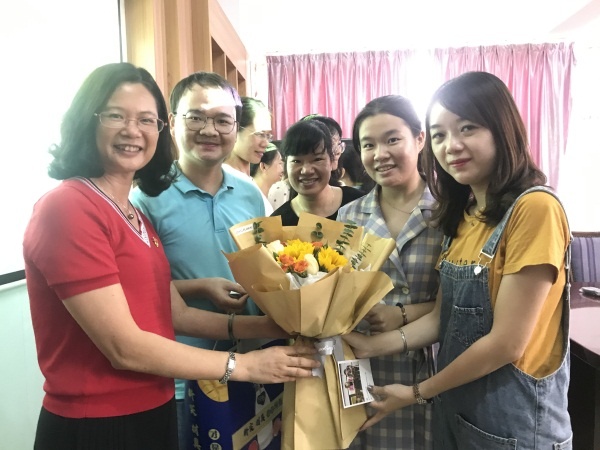 活動(dòng)在青年教師代表施惠群老師、周艷珍老師和林文佳老師的成長感言中拉開序幕。周老師談到大豐小學(xué)是她的幼兒園,而蘇少麗校長就是她的啟蒙老師,在日常的教學(xué)中,周老師感受到了蘇校長對(duì)她的指導(dǎo)與幫助。 “點(diǎn)滴之恩當(dāng)涌泉相報(bào)”,青年教師對(duì)導(dǎo)師們飽含深情的感恩之言把活動(dòng)推向高潮,各位青年教師以自己喜歡的方式向?qū)煴磉_(dá)感激之情,有熱情的擁抱,有鮮艷的花束,也有寫滿溫情話語的明信片。