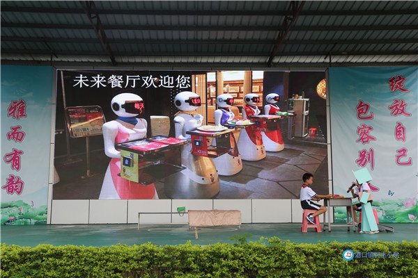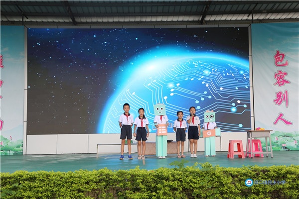 首先,四(3)班的孩子們?yōu)榇蠹冶硌萘司脑O計的科技校園?。骸吨悄苌?,美麗人生》。劇中生動形象的生活場景,帶領師生們體驗了一把享受智能生活的一天。同學們紛紛表示生活中那些精準、貼心的智能設備,真的太方便了,有了它們我們的生活更精彩、更便捷、更舒適。