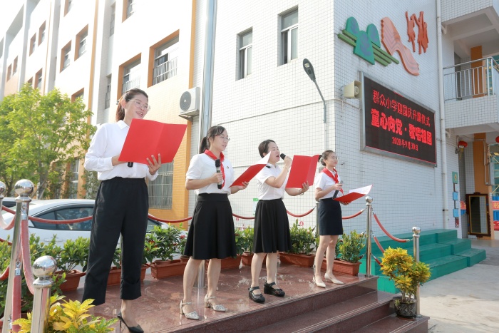 最后,在鮮紅的國旗下,全體師生向偉大的祖國鄭重呼號:“祖國萬歲!祖國萬歲!”群眾小學(xué)全體師生為祖國送上最美好的祝福,共同祝愿祖國更加繁榮昌盛!