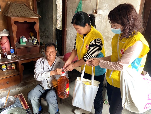 10點(diǎn)整,陽(yáng)光柔柔地灑在校園的道路上,五對(duì)親子義工以及社區(qū)志愿者們?cè)谛iT口集合。集合完畢后,親子義工和志愿者們上門對(duì)社區(qū)的老人進(jìn)行慰問(wèn)。一聲問(wèn)候,兩句細(xì)語(yǔ),談話時(shí)溢出無(wú)處不在的濃濃情意,在老人們的家里,他們與老人們拉拉家常,詳細(xì)了解他們家庭、生活和健康狀況,傾聽(tīng)他們的心聲,提醒他們注意身體健康并送上慰問(wèn)品,同時(shí)為老人們送去了節(jié)日的問(wèn)候,讓老人們深深感受到了大家尊老敬老的愛(ài)心與溫暖。老人們臉上都掛著溫暖的笑容。