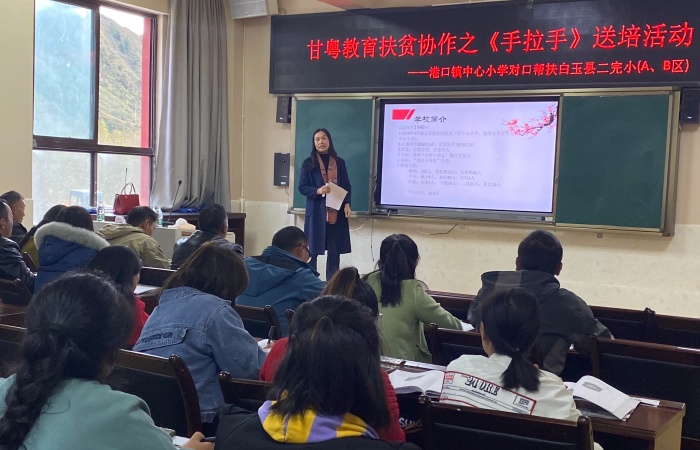 為貫徹落實國家和省委省政府關于教育對口支援,助力四川省白玉縣扶貧協(xié)作教育事業(yè)深入發(fā)展,加強中山市和甘孜州白玉縣兩地學校的交流合作,2020年10月15日至22日,港口鎮(zhèn)中心小學支部書記章小蘭同志帶領學校五位骨干教師到四川省甘孜州白玉縣城區(qū)第二完全寄宿制學校(以下簡稱白玉縣二完小)開展送培、送教活動。