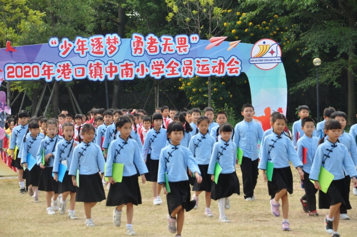 2020年面對(duì)新冠疫情的肆虐,一批抗疫人員沖鋒在前線,與疫情勇敢作斗爭(zhēng)。為了鼓勵(lì)學(xué)生們向在最前線的醫(yī)生、警察、志愿者等抗疫人員學(xué)習(xí),港口鎮(zhèn)中南小學(xué)于2020年11月10日舉行了以“少年逐夢(mèng),勇者無畏”為主題的2020學(xué)年全員運(yùn)動(dòng)會(huì)。
