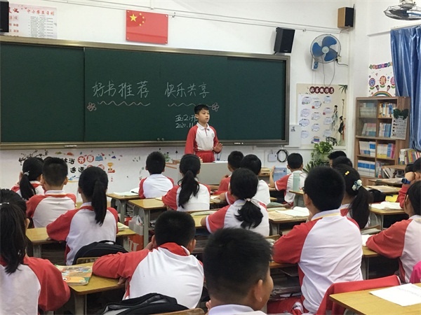 好書推薦,快樂共享。在全校語(yǔ)文教師的精心準(zhǔn)備和引領(lǐng)下,好書推薦活動(dòng)如期而至。同學(xué)們紛紛帶上自己喜愛的圖書,自信地站在講臺(tái)上,從好詞佳句、主要內(nèi)容、精彩內(nèi)容等方面給同班同學(xué)進(jìn)行分享、推薦好書。不少學(xué)生表示,好書推薦活動(dòng)讓他們了解到不少好書,拓寬了自己的讀書視野。