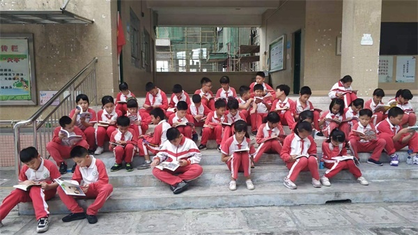 好書為伴,書海遨游。在11月份中旬,學(xué)校與港口鎮(zhèn)三友書店攜手合作,開展了“好書進(jìn)校園”活動(dòng)?;顒?dòng)以班級(jí)為單位,利用課間時(shí)間,同學(xué)們?cè)谛@內(nèi)搭建起的“流動(dòng)購(gòu)書中心”閱讀自己喜愛的書籍,同學(xué)們安靜閱讀的身影使整個(gè)校園充滿了閱讀的氛圍。