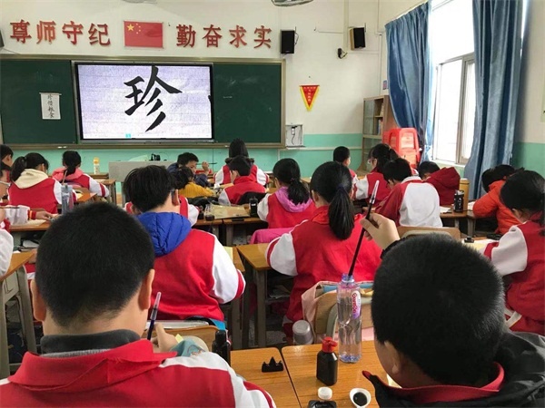 這一場(chǎng)比賽除了有學(xué)生們的精彩表現(xiàn)以外,更有教師們之間的“較量”。全體教師開展了一場(chǎng)別開生面的“粉筆書法”比賽,大家在比賽中相互切磋,相互學(xué)習(xí)。