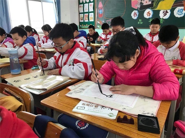 比賽現(xiàn)場(chǎng),學(xué)生在書法紙上認(rèn)真書寫,即席揮毫,橫平豎直,下筆皆有神。舞動(dòng)的筆端書寫著對(duì)書法的熱愛,典雅的字體表達(dá)著個(gè)人的追求。通過這場(chǎng)別出心裁的書法比賽,學(xué)??疾榱艘欢昙?jí)學(xué)生們硬筆書法和三至六年級(jí)軟筆書法的掌握情況,并取得了良好的成效。