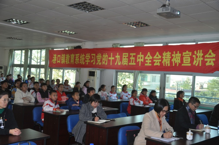 為深入貫徹黨的十九屆五中全會精神,聚焦培養(yǎng)擔(dān)當(dāng)民族復(fù)興大任和時代新人。2020年12月31日下午,港口鎮(zhèn)中南小學(xué)舉行了十九屆五中全會宣講會,主講人為市宣講員、大南中學(xué)德育副主任周智勇。港口鎮(zhèn)黨委委員、港口鎮(zhèn)教育黨委書記羅希京、港口鎮(zhèn)教育黨委副書記、港口鎮(zhèn)教育和體育事務(wù)指導(dǎo)中心主任劉憲軍、港口鎮(zhèn)教育黨委委員、港口鎮(zhèn)教育和體育事務(wù)指導(dǎo)中心副主任張育文、港口鎮(zhèn)中南小學(xué)校長黃權(quán)炎、中南小學(xué)教師代表和六年級學(xué)生參加了此次宣講會。
