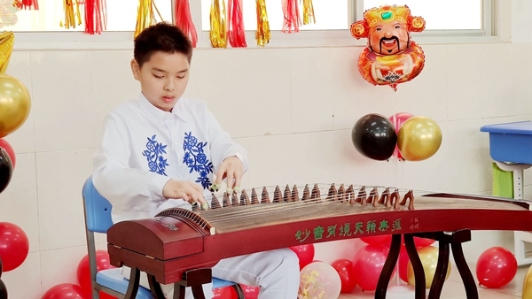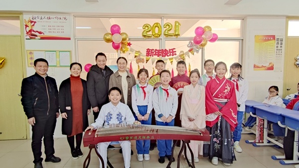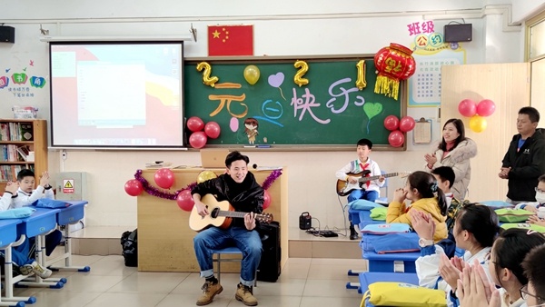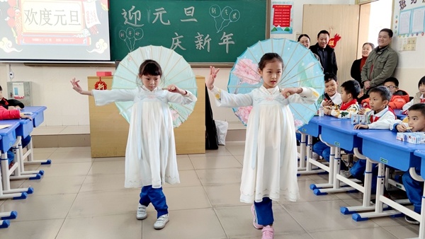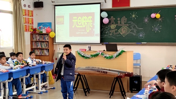 歌聲點(diǎn)燃2021 舞蹈綻放新年精彩 走過不平凡的一年,迎來嶄新的2021。為營造喜慶氛圍,激發(fā)學(xué)生藝術(shù)創(chuàng)作能力,豐富學(xué)生文化生活,推進(jìn)校園文化建設(shè),迎接新年的到來,2020年12月31日下午,中山華附小學(xué)校區(qū)以班級為單位,舉行元旦迎新慶?;顒?,全體行政走進(jìn)各班與同學(xué)們一起歡慶節(jié)日,喜迎2021新年的到來。 五彩繽紛的手繪黑板,精巧喜慶的節(jié)日裝飾,各具特色的主題板報(bào)……處處洋溢著同學(xué)們對節(jié)日的期待和祝福;光潔明亮的教室,整齊擺放的桌椅,平時嚴(yán)肅認(rèn)真的教室化身成氛圍濃厚的小小舞臺,同學(xué)們精裝上場,表演了豐富多彩的節(jié)目。歌曲、相聲、舞蹈精彩紛呈,詩歌、小品、武術(shù)表演讓人耳目一新,古箏、電子琴、架子鼓、吉他才藝各展風(fēng)采。每個班級傳出的喝彩聲此起彼伏,校園內(nèi)洋溢著一片歡樂的節(jié)日氛圍。你說我猜、搶凳子、拍數(shù)字等團(tuán)體活動,師生通過游戲真情互動,增進(jìn)情誼。輕松和諧的氛圍,幽默活潑的風(fēng)格,活動過程歡樂不斷。 簡短的慶?;顒?,各班級自定活動內(nèi)容,同學(xué)們自編自演,不僅展現(xiàn)了華附小學(xué)子扎實(shí)的文藝素養(yǎng),讓同學(xué)們在緊張的復(fù)習(xí)氛圍中放松了心情,更是激勵了同學(xué)們以積極飽滿的熱情投入到新一年的學(xué)習(xí)中去。