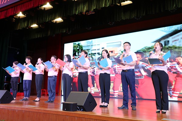 一束鮮花,一句感謝,一個擁抱,一份感恩。在這一刻,難忘師恩,師恩難忘。8名學(xué)生走上舞臺,深情地朗誦《感謝師恩》,表達了他們對老師的感激與不舍。
