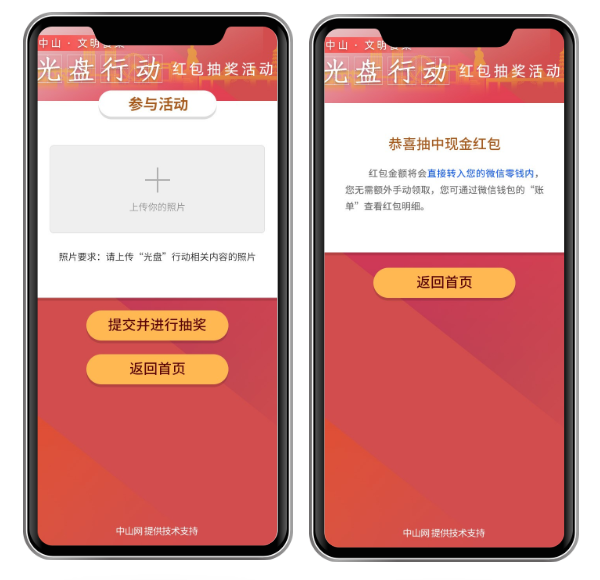 參與者將就餐后的“光盤”照片上傳到活動頁面即可抽取紅包。