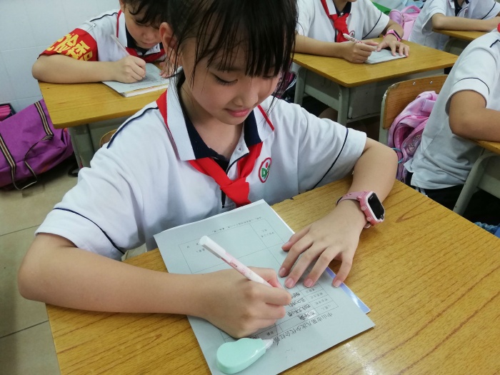 接著是填寫《紅領(lǐng)巾小心愿表》。 “紅領(lǐng)巾們”寫得多認(rèn)真呀!一個(gè)個(gè)的小提案、小心愿躍然紙上,充分體現(xiàn)了少先隊(duì)員當(dāng)家作主的主人翁精神。