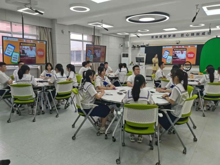 與會(huì)者走進(jìn)課室,聽取學(xué)校信息技術(shù)部彭軍老師講授的研討課《直播帶貨基礎(chǔ)—定位主播人設(shè)》。聽課教師認(rèn)為,這節(jié)課教學(xué)內(nèi)容豐富, 材料新穎,緊跟時(shí)代步伐,貼近生活,課堂組織多樣化,在教學(xué)過程中充分利用信息化手段,在有效時(shí)間實(shí)現(xiàn)了教學(xué)目標(biāo)。同時(shí),在交流會(huì)上大家對學(xué)生的學(xué)習(xí)動(dòng)機(jī)、興趣、習(xí)慣和策略等細(xì)節(jié)問題進(jìn)行了探討交流。