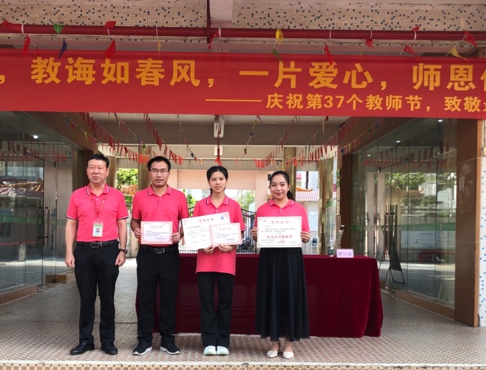 大會(huì)第二項(xiàng),政教處陳七靈副主任宣讀了表彰的中山市優(yōu)秀教師及中山市優(yōu)秀少先隊(duì)輔導(dǎo)員,劉品江校長(zhǎng)與何元柱副校長(zhǎng)為他們頒發(fā)了榮譽(yù)證書(shū)。