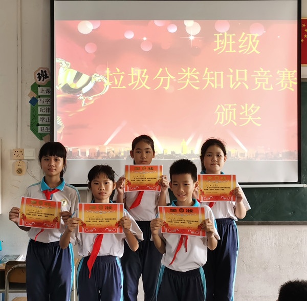 接下來,各班級也陸續(xù)舉行了垃圾分類知識競賽,同學(xué)們都十分踴躍搶答問題,最終各班都決出了五個優(yōu)勝者,被評為“垃圾分類小衛(wèi)士”。