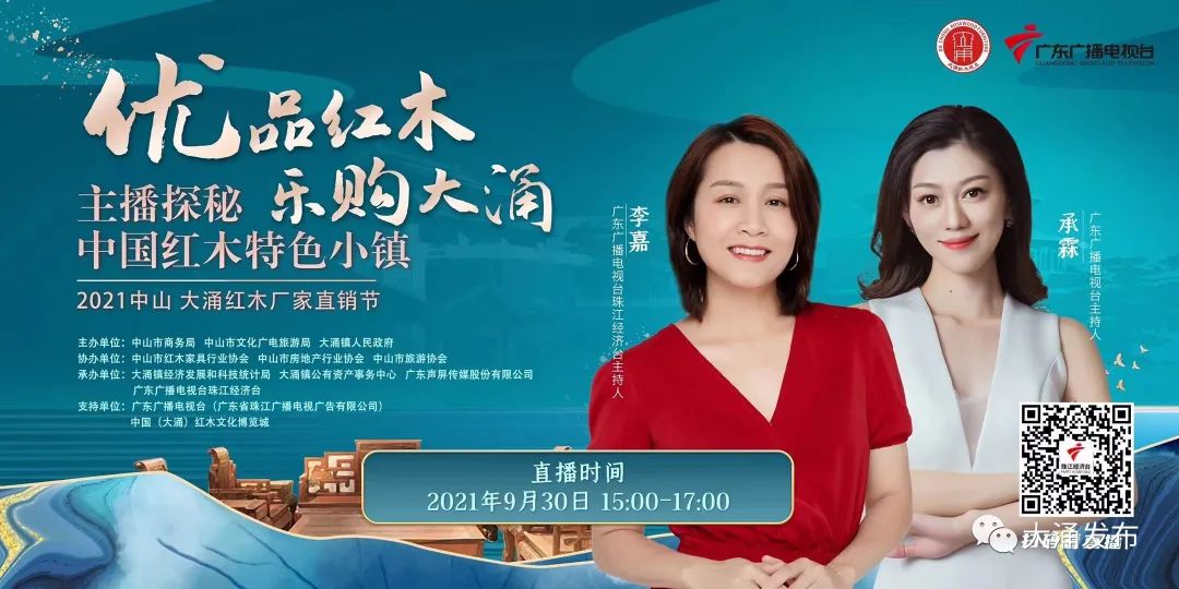 9月30日下午3:00,廣東廣播電視臺(tái)知名主持人李嘉、承霖將走進(jìn)紅木文化旅游特色小鎮(zhèn),直播探訪伍氏大觀園、紅古軒、地天泰、博大、印巷森刻等大涌紅木優(yōu)品企業(yè),與百萬粉絲觀眾展開長(zhǎng)達(dá)兩個(gè)小時(shí)的線上紅木文化體驗(yàn)之旅。