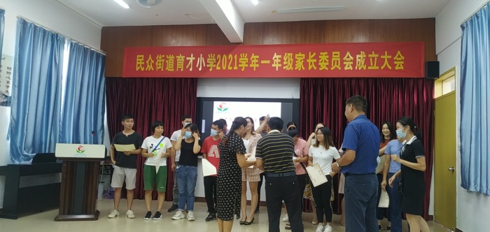 第二個(gè)議程:由李紅梅主任解讀育才小學(xué)家長委員會(huì)管理制度,全體參會(huì)人員通過制度。然后宣讀各班家委成員、志愿交通協(xié)管員名單,還以班級(jí)為單位頒發(fā)相應(yīng)的證書,并合影留念。