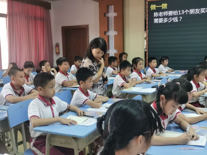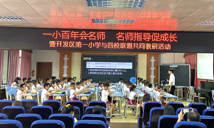承擔(dān)此次活動的授課教師和學(xué)生是來自開發(fā)區(qū)第一小學(xué)陳開明老師和四年級5班的學(xué)生。陳老師在備課組成員的幫助下不斷調(diào)整教學(xué)方法,在前期多次試教中完善課堂細節(jié),精準把握課堂預(yù)設(shè)與教學(xué)效果。讓人眼前一亮的是,在此次展示的四年級上冊《三位數(shù)乘兩位數(shù)》課堂中,陳老師把數(shù)形結(jié)合、算式和豎式相結(jié)合,引導(dǎo)學(xué)生不僅要知道“怎么算”,還要明白“為什么這樣算”,突破常規(guī)算理;新穎的教學(xué)策略,既培養(yǎng)學(xué)生思考的學(xué)習(xí)習(xí)慣,更突出了學(xué)本教學(xué)的理念,同時能有效運用舊知遷移完成新知學(xué)習(xí),達到了很好的教學(xué)效果。給在座的老師們呈現(xiàn)了一場知識的盛宴,帶來了很多啟發(fā)和思考。
