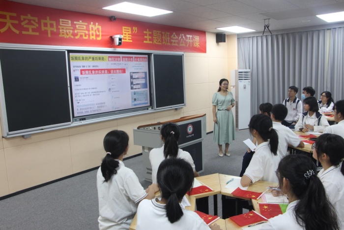 學(xué)生區(qū)嘉欣說,林翠老師的課挺有意思的,讓我們真正明白應(yīng)該追什么樣的“明星”。學(xué)生蘇振豪說,通過上課,我們明白了國家整治“飯圈”文化的意義,也深刻了解了理想之“星”、祖國之“星”才是我們應(yīng)該一生追求的。林翠老師是中山市黨旗飄飄主題班會(huì)課一等獎(jiǎng)獲得者,為了上好這堂班會(huì)課,她在課前向?qū)W生們發(fā)放問卷調(diào)查,與學(xué)校研課團(tuán)隊(duì)仔細(xì)打磨,努力讓這節(jié)示范課在師生心中開花結(jié)果。
