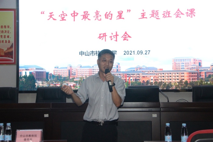 中學(xué)生該追什么樣的“星”?如何培養(yǎng)青年學(xué)生的愛國之情?這些問題一直是德育工作的焦點(diǎn)問題。9月27日下午,桂山中學(xué)響應(yīng)中山市教育和體育局的號(hào)召,研磨呈現(xiàn)了一節(jié)“天空中最亮的‘星’”的主題班會(huì)示范課。德育科郭勇科長、桂山中學(xué)陳福生副校長、東區(qū)中學(xué)高宏副校長以及全市14所直屬學(xué)校德育線的領(lǐng)導(dǎo)和部分班主任觀摩了此次班會(huì)課,共同研討如何正確引導(dǎo)學(xué)生樹立正確的追星觀,讓正確的榜樣照亮學(xué)生的青春之路。