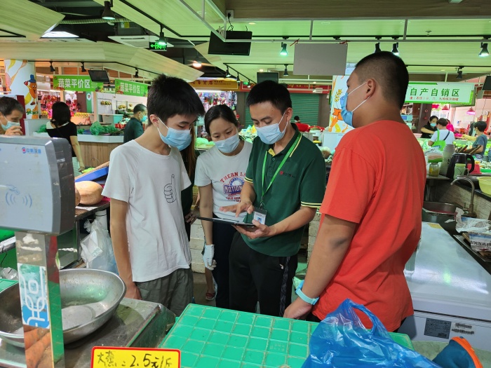 從畏縮到勇敢,從生疏到嫻熟,學(xué)生們?cè)谝徊讲匠砷L(zhǎng),顧客們看著他們熟練規(guī)范的操作紛紛豎起大拇指。竹苑市場(chǎng)場(chǎng)長(zhǎng)孔德賢對(duì)這群孩子們的勞動(dòng)品質(zhì)和學(xué)習(xí)能力也是贊不絕口:“一開(kāi)始有點(diǎn)害羞,經(jīng)過(guò)一段時(shí)間的學(xué)習(xí)和鍛煉后,他們?nèi)缃褚疡{輕就熟、勝任工作。”一位前來(lái)買菜的阿姨接受記者采訪時(shí),表示對(duì)孩子們的表現(xiàn)十分滿意:“如果不是這個(gè)宣傳板在這里,我真看不出他們有什么不一樣?!?/p>