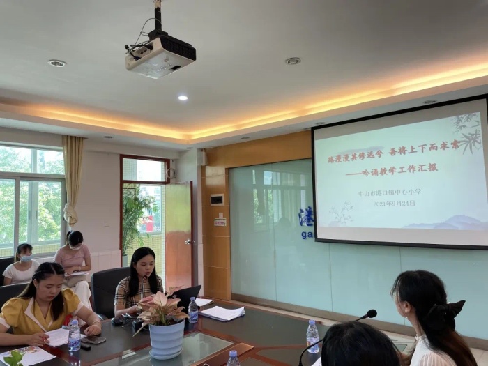 活動(dòng)第二個(gè)議程由課題組成員楊秋云老師圍繞著中心小學(xué)是怎樣將吟誦融入現(xiàn)在的語文教學(xué)中做分享講話。楊老師通過圖片、活動(dòng)和視頻等方式呈現(xiàn)出吟誦活動(dòng)在中心小學(xué)的蓬勃發(fā)展勢(shì)頭。