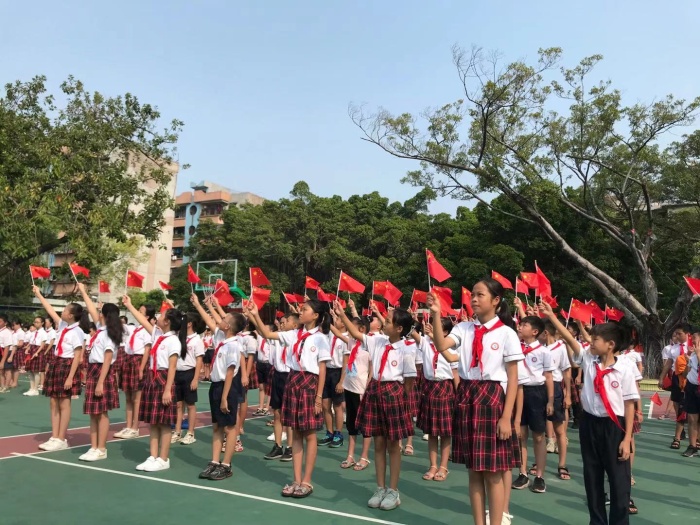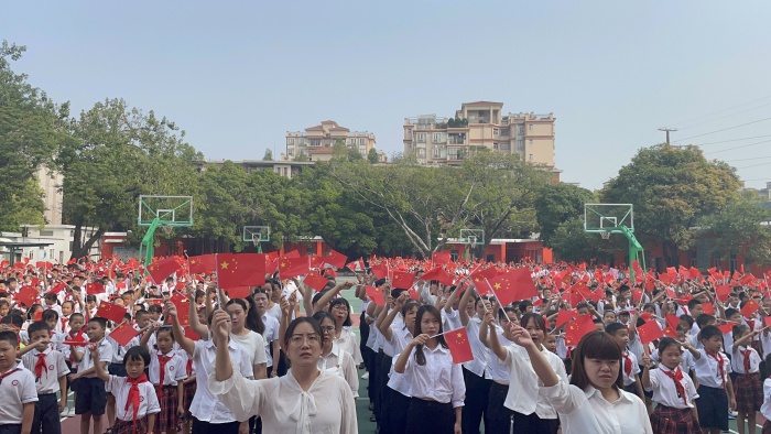 為慶祝中華人民共和國成立72周年,引導(dǎo)學(xué)生弘揚(yáng)愛國主義精神,培育和踐行社會(huì)主義核心價(jià)值觀,樹立聽黨話、跟黨走的信念,抒發(fā)熱愛祖國、祝福祖國的情感,2021年9月30日,黃圃雛鷹學(xué)校全體師生歡聚一堂舉行了“致敬英雄,向國旗敬禮”愛國主題教育活動(dòng),用歌聲向祖國媽媽獻(xiàn)上自己深深的祝福。