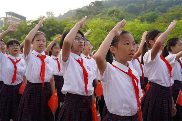 紅旗揮舞,歌聲飄揚(yáng),中山一中8000師生為祖國(guó)送祝福