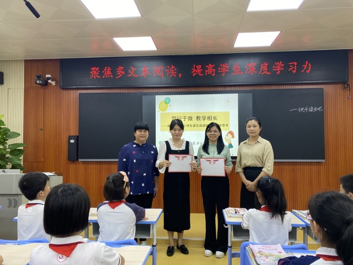 為了引領(lǐng)全鎮(zhèn)五年級語文教師,全面了解統(tǒng)編版五年級語文上冊教材的結(jié)構(gòu)特點(diǎn),聚焦多文本閱讀,提高多文本閱讀教學(xué)效率,提高學(xué)生深度學(xué)習(xí)力,2021年10月14日下午,小欖鎮(zhèn)東升片小學(xué)語文中心教研組在小欖鎮(zhèn)同樂小學(xué)舉行了統(tǒng)編版五年級語文上冊“聚焦多文本閱讀教學(xué),提高學(xué)生深度學(xué)習(xí)力”的教訓(xùn)一體化活動。小欖鎮(zhèn)小語中心教研組副組長劉獨(dú)艷老師、東方小學(xué)劉霞老師和小欖鎮(zhèn)東升片區(qū)學(xué)校五六年級的語文老師們出席了本次活動。