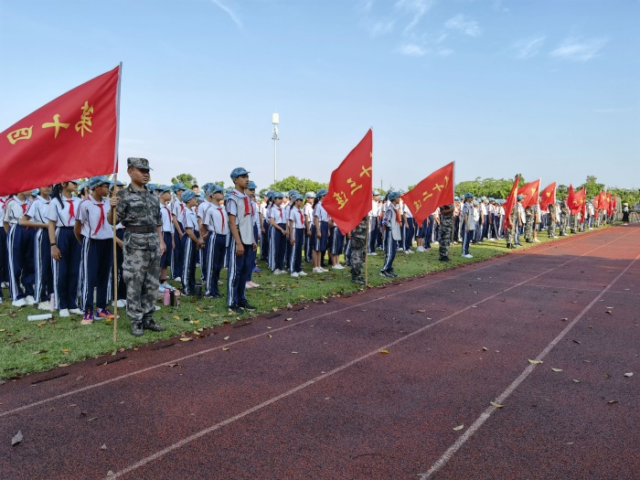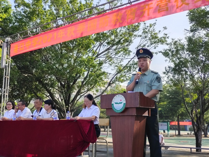 為了強(qiáng)化學(xué)生的國(guó)防意識(shí),進(jìn)一步培養(yǎng)學(xué)生的愛國(guó)情操,增強(qiáng)班集體的凝聚力和向心力,提升學(xué)生健康的身心素養(yǎng),2021年10月11日,中山市港口中學(xué)初一新生舉辦了國(guó)防教育開營(yíng)儀式。教育和體育事務(wù)中心劉憲軍主任、鎮(zhèn)武裝部副部長(zhǎng)賀洪彪先生、學(xué)校廖志堅(jiān)校長(zhǎng)攜同全體行政、初一各班班主任出席了本次活動(dòng)。