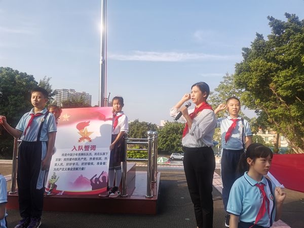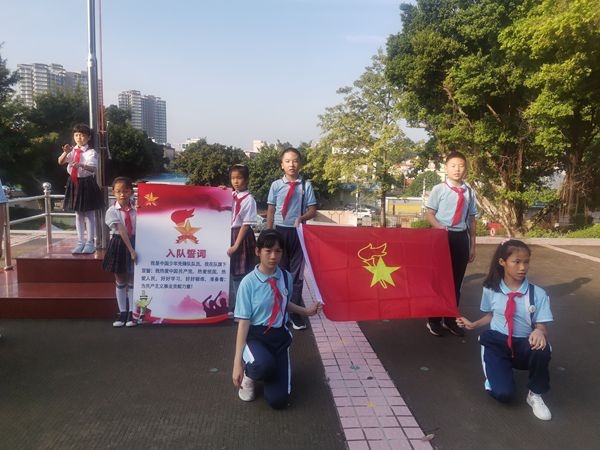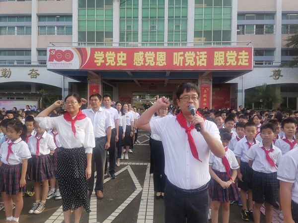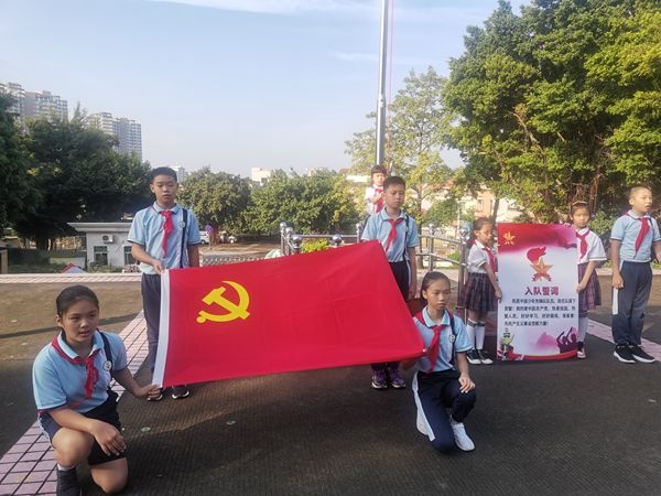 10月11日早上,沙溪鎮(zhèn)中心小學(xué)一如既往地進(jìn)行莊嚴(yán)的升旗禮活動,但與平時不一樣的是,為宣傳貫徹習(xí)近平總書記“七一”重要講話精神,貫徹落實習(xí)近平總書記關(guān)于少年兒童和少先隊工作的重要論述,認(rèn)真落實《中共中央關(guān)于全面加強新時代少年先對工作的意見》和少先隊第八次全國代表大會提出的“著力邁向社會、進(jìn)軍線上,加強社會化工作體系建設(shè)”的工作部署,同時為了迎接少先隊中山市第八次代表大會的到來,這里正在舉行一場特別的少先隊微儀式 ,主題為“請黨放心,強國有我”。