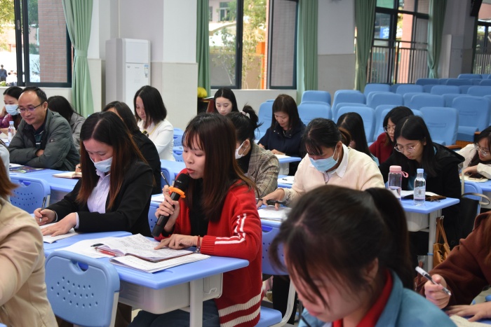 隨后,林妙麗老師和林月英老師為新老師們帶來了精彩的講座。林妙麗老師圍繞何為跨教材、跨教材教學(xué)資源的價(jià)值和跨教材教學(xué)資源的開發(fā)與運(yùn)用三個(gè)方面展開分享,鼓勵(lì)老師們整合教材,取長(zhǎng)補(bǔ)短,不斷豐富自己的教學(xué)環(huán)節(jié)。而林月英老師就新教師的專業(yè)成長(zhǎng)之路展開分享。林老師肯定了年輕教師獨(dú)特的優(yōu)勢(shì),鼓勵(lì)老師們多讀書,積極研究名師課堂,積極開展課題研究,潛心學(xué)習(xí),博采眾長(zhǎng),并運(yùn)用到自己的教學(xué)中來。