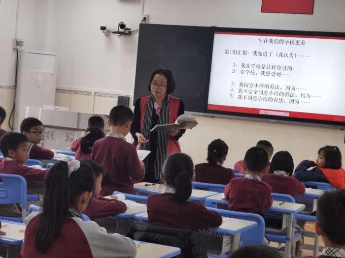 肖志紅校長始終認(rèn)為學(xué)生才是課堂的主體,應(yīng)給學(xué)生思考的空間,展示的舞臺,因此,這節(jié)課始終以學(xué)生自學(xué)、匯報為主,貼近學(xué)生的生活實(shí)際。以小組匯報為主的課堂形式,大大提高了道德與法治的課堂教學(xué)效率,鍛煉了學(xué)生的學(xué)習(xí)能力。