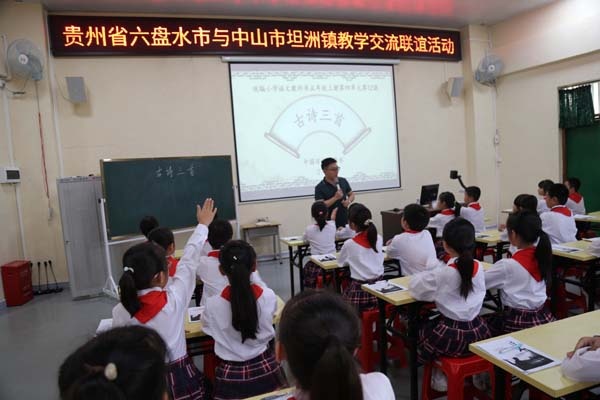 為加強(qiáng)貴州省六盤(pán)水市與中山市坦洲鎮(zhèn)的教學(xué)交流,11月5日上午,在貴州省六盤(pán)水市教育局的組織下,六盤(pán)水市各區(qū)小學(xué)的正副校長(zhǎng)一行12人來(lái)到中山市坦洲鎮(zhèn)。中山市坦洲鎮(zhèn)教體文旅局副局長(zhǎng)韋瑋、楊興,教育和體育事務(wù)指導(dǎo)中心主任張志略、教研專(zhuān)干梁北橋,林東小學(xué)校長(zhǎng)吳維雄等領(lǐng)導(dǎo)熱情接待了遠(yuǎn)道而來(lái)的同行們,并在林東小學(xué)階梯室舉行了教學(xué)交流聯(lián)誼活動(dòng)。來(lái)自坦洲鎮(zhèn)各小學(xué)的語(yǔ)文骨干教師七十余人,也參加了本次活動(dòng)。
