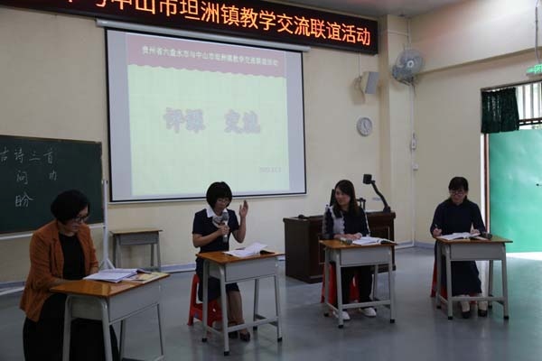 課例展示后,進(jìn)入了研討交流環(huán)節(jié)。來(lái)自中山市坦洲鎮(zhèn)小學(xué)語(yǔ)文中心教研組的教師和六盤(pán)水市各區(qū)小學(xué)正副校長(zhǎng)的代表,分別就兩節(jié)研討課的教學(xué)方式方法,教學(xué)質(zhì)量效果等進(jìn)行了點(diǎn)評(píng)。大家暢所欲言,有感受、有討論、有肯定,有建議,思維在交流中碰撞,能力在互動(dòng)中提高,氣氛十分熱烈。