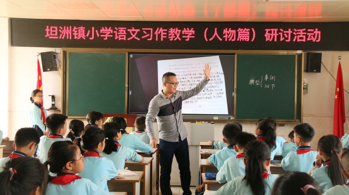 活動(dòng)伊始,由三鄉(xiāng)鎮(zhèn)鴉崗小學(xué)李祥興老師執(zhí)教部編版五年級(jí)下冊(cè)第五單元習(xí)作《形形色色的人》。課上,老師風(fēng)趣幽默的性格成功吸引五(3)班的孩子,課堂中笑聲不斷,生成不斷。課例中李老師引入自己班級(jí)孩子愛(ài)耍小聰明的事例,一下打開(kāi)了學(xué)生的話匣子;利用教材中的思維導(dǎo)圖與學(xué)生們探討何為典型事例;緊接著下水文的呈現(xiàn),引導(dǎo)孩子如何把典型細(xì)節(jié)寫(xiě)好,并根據(jù)人物特點(diǎn)選擇恰當(dāng)?shù)谋磉_(dá)方式;最后在李老師的引導(dǎo)下,五(3)班的孩子一寫(xiě)為快。李老師的巧妙設(shè)計(jì)既立足課堂,又有所創(chuàng)新;巧妙利用班級(jí)學(xué)生的例子,喚醒孩子們的習(xí)作內(nèi)驅(qū)力,是對(duì)教材習(xí)作的班本習(xí)作的成功改造。