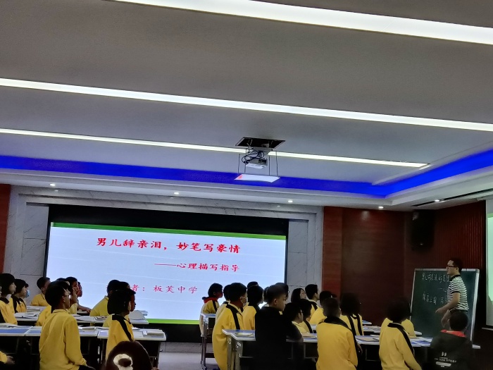 羅廣英老師結(jié)合板芙本土特色,以選拔紅色里溪講解員為引子,用小兵張嘎的影片細(xì)節(jié)切入,通過慢鏡頭再現(xiàn)、下水文細(xì)致指導(dǎo)動(dòng)作、心理描寫的具體方法。同方學(xué)校劉文靜老師巧妙結(jié)合時(shí)政熱點(diǎn),通過“晚舟歸國(guó)”與《長(zhǎng)津湖》畫面指導(dǎo)動(dòng)作描寫。板芙一中王群老師課堂沉穩(wěn),通過有梯度的教學(xué)設(shè)計(jì)將重難點(diǎn)一一突破。板芙中學(xué)陳軍強(qiáng)老師以《男兒辭親淚,妙筆寫豪情》為題,以“淚”為切入點(diǎn),充分展現(xiàn)寫后的指導(dǎo)才能。