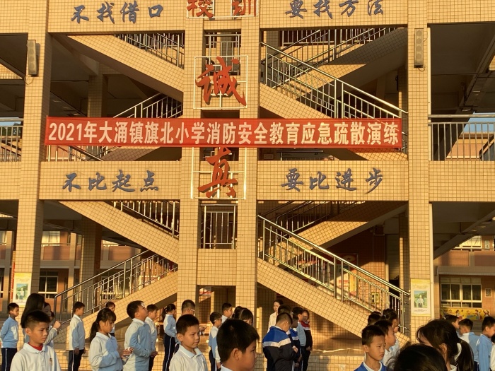為切實提高大涌鎮(zhèn)旗北小學(xué)師生的消防意識,提高火災(zāi)防控以及對突發(fā)事件的應(yīng)變能力,真正掌握消防安全知識,增強(qiáng)自救互救的能力,大涌鎮(zhèn)旗北小學(xué)于2021年11月9日開展消防疏散演練活動。