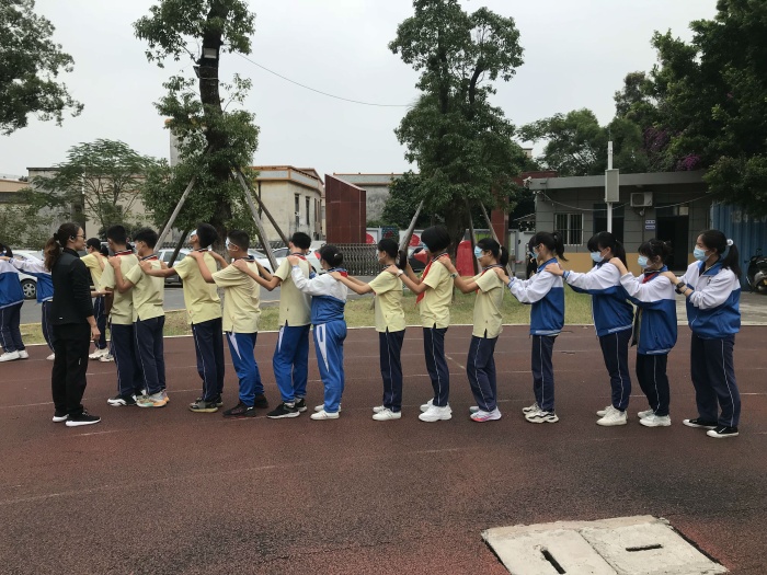 本次德育拓展活動(dòng)首先由課題主持人王武輝老師和課題組成員孫滔、朱四萍、陳浩芳、劉樂琴、鄭志權(quán)等五位老師圍繞“愛國(guó)”為主題開展德育拓展活動(dòng)。他們主持的游戲是 “重走長(zhǎng)征路”,課題組的老師圍繞紅軍長(zhǎng)征的紅色故事設(shè)置游戲情境,學(xué)生隊(duì)伍中指揮者根據(jù)老師設(shè)置的 “長(zhǎng)征路線”,穿越預(yù)定的路線。游戲結(jié)束后,進(jìn)行游戲感受分享,在游戲中同學(xué)們感受到了小組同學(xué)規(guī)則、默契的重要性。同時(shí)也通過這個(gè)游戲,學(xué)生們深深地感受紅軍長(zhǎng)征的不容易,在黑夜中“穿山越嶺”,秉著堅(jiān)持就是勝利,永不放棄的敬業(yè)精神,突破種種障礙,最終到達(dá)勝利的彼岸,從而增強(qiáng)學(xué)生的愛國(guó)情懷,讓學(xué)生更加珍惜如今來自不易的幸福生活。