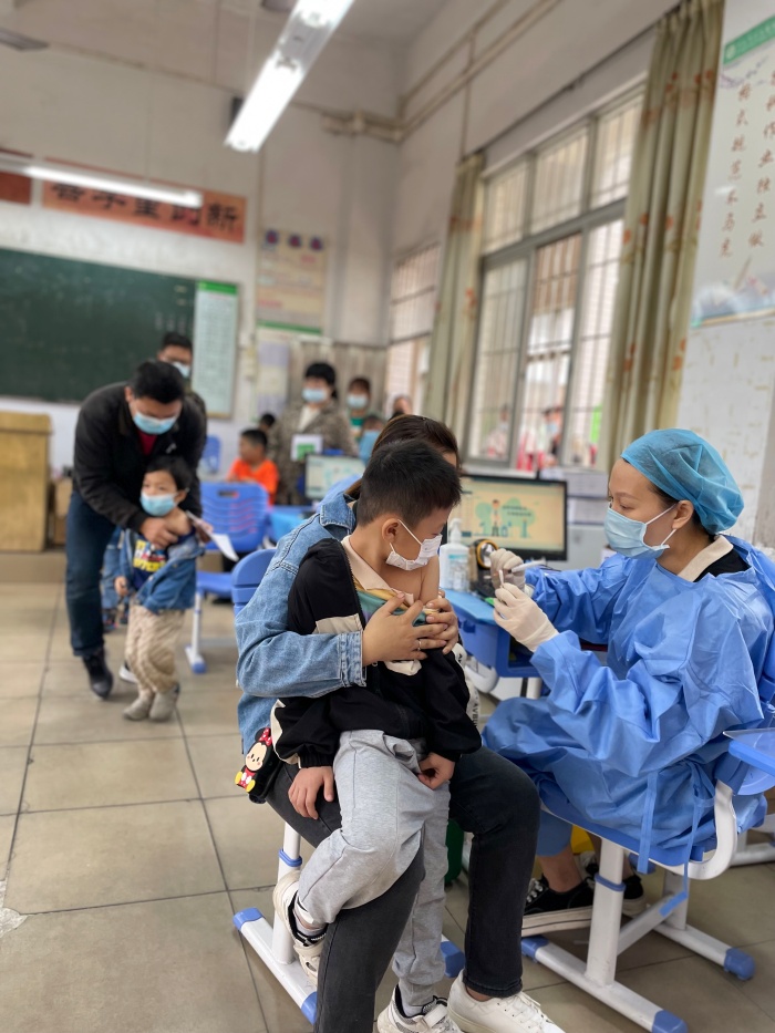 當(dāng)前國(guó)內(nèi)外疫情形勢(shì)依然嚴(yán)峻復(fù)雜,接種新冠疫苗,構(gòu)建群體免疫屏障,是阻斷新冠病毒傳播、保障全民健康的有效手段。接上級(jí)的疫苗接種通知,中山市東鳳穗成新徽學(xué)校認(rèn)真落實(shí)上級(jí)相關(guān)決策部署,東鳳疫情防控指揮部負(fù)責(zé)人黃春光到學(xué)校對(duì)接種點(diǎn)的相關(guān)工作進(jìn)行了指導(dǎo),醫(yī)護(hù)人員與全體教師群策群力、通力合作,順利完成學(xué)生新冠疫苗接種工作。