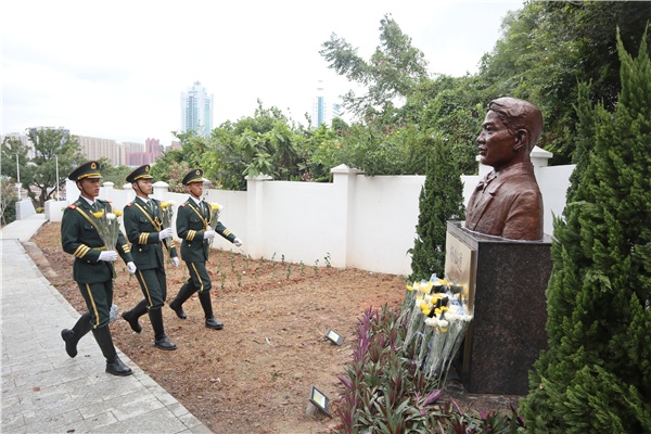 上午11點(diǎn),楊仙逸將軍銅像揭幕典禮在西林山航空文化園舉行,為建校96周年獻(xiàn)禮。孫必勝先生、程偉夫先生一家、何儉強(qiáng)老校長(zhǎng)、陳迪秋校友、學(xué)校全體行政出席儀式。