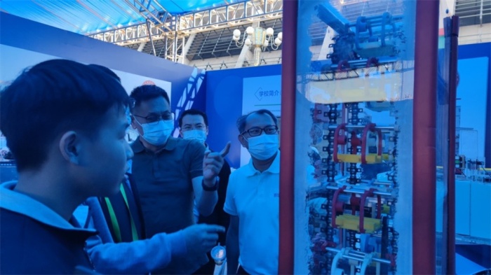 在學校的精心安排布置下,將本校展位劃分為學校簡介、科技創(chuàng)新成果、無人機專業(yè)建設成果三個區(qū)域,創(chuàng)新元素突出,科技感十足,讓每一位前來參觀體驗的嘉賓都能近距離感受到科技的魅力。