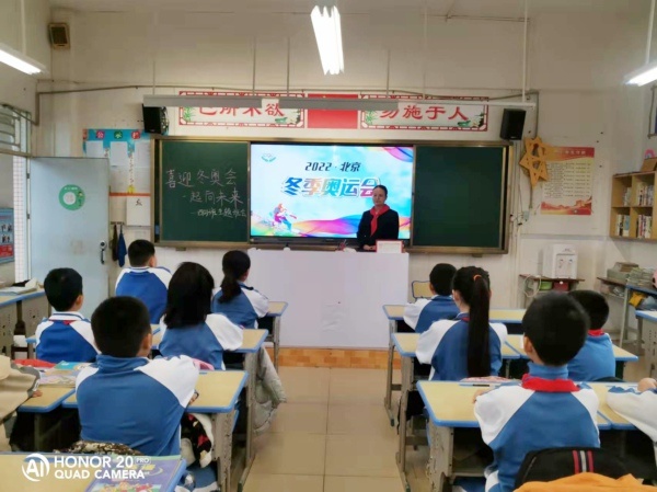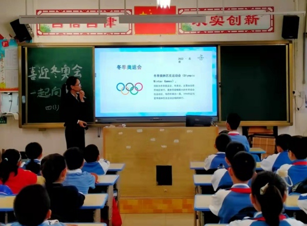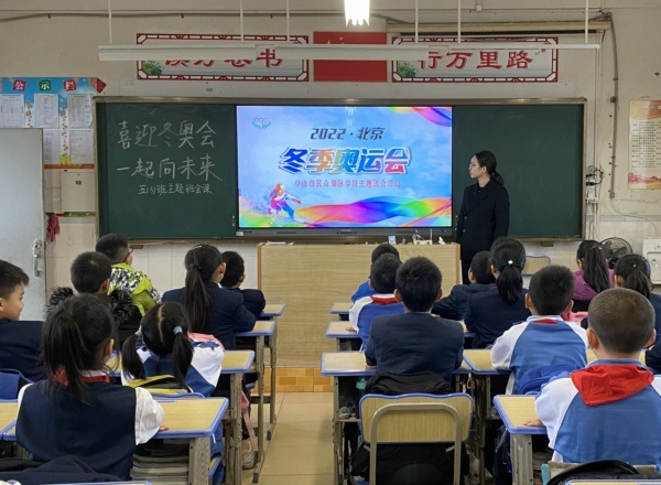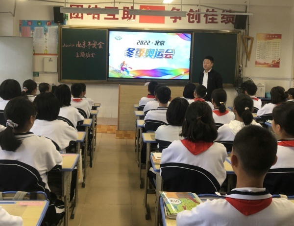 紅旗迎風飄揚,人們微笑歌唱,用愛迎接朝陽,火炬閃耀光芒,展現(xiàn)亮麗色彩,慶賀北京冬奧到來。為啟發(fā)學生對2022冬奧會和祖國的祝福,增強了解形式多樣的冬奧文化,升華學生的愛國情懷。11月22日,錦標學校舉行莊嚴的升旗儀式后,組織各班開展了“喜迎冬奧會,一起向未來”主題班會活動。
