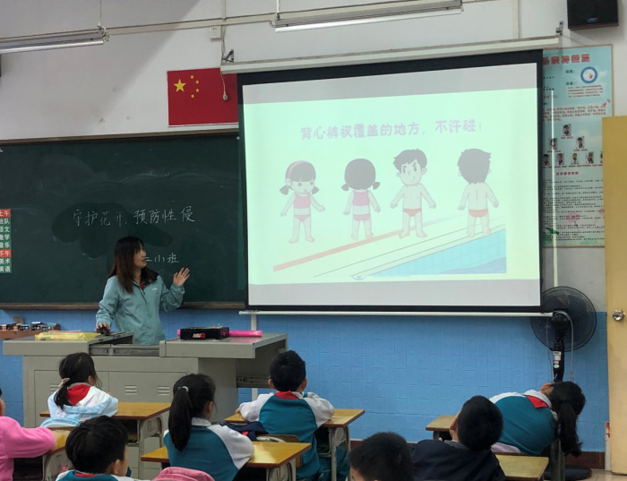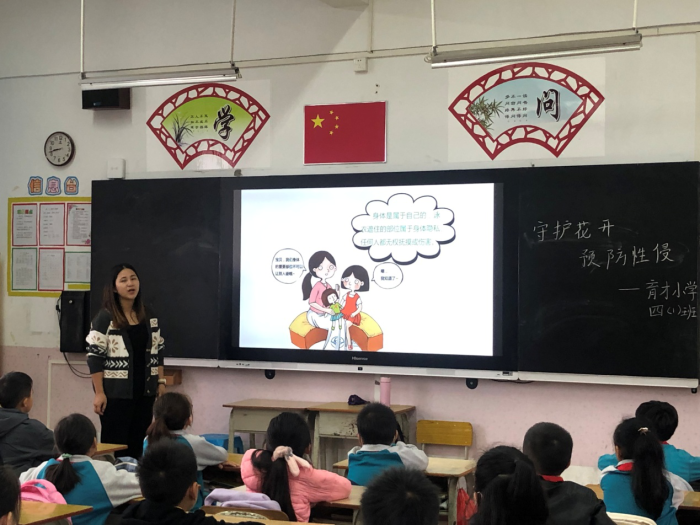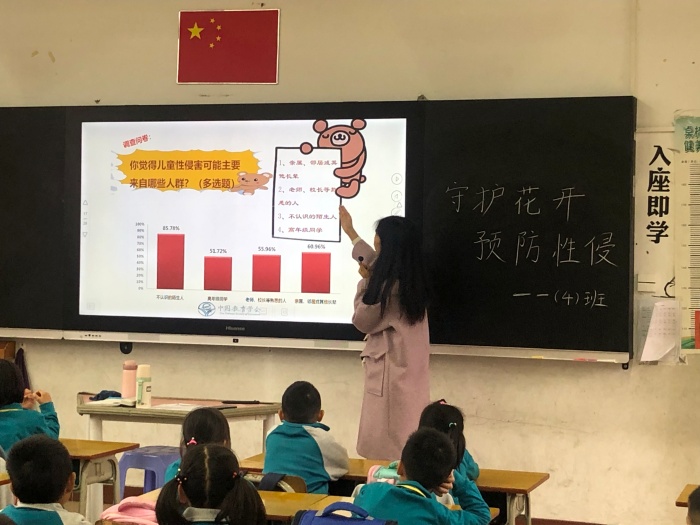 班會(huì)課上,老師借助多媒體輔助解說(shuō),與學(xué)生充分互動(dòng)交流,從“教孩子們認(rèn)識(shí)隱私部位”“教孩子們識(shí)別實(shí)施性侵害的伎倆”等,給學(xué)生上了一堂保護(hù)未成年人的性教育課程,讓學(xué)生建立了“隱私”的概念,學(xué)會(huì)如何保護(hù)自己和尊重別人的隱私部位等知識(shí)。接著,課堂引入小游戲“身體紅綠燈”教孩子們?nèi)绾伪鎰e壞人、保護(hù)自己,當(dāng)面臨正在實(shí)施的性侵害如何處理、遭遇性侵害后如何尋求幫助等問(wèn)題展開(kāi)學(xué)習(xí),讓孩子們提高警惕,增強(qiáng)防范意識(shí)。