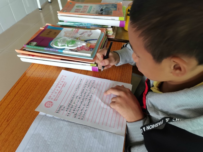 觀看展板后,同學們興致盎然,在老師的指導下,以“給父母的一封信”為題目,親身體驗寫信的全過程。他們把想說給父母的心里話、小心愿等,都書寫在這一張張信紙上,然后小心翼翼折疊裝進信封,把它當作與父母交流溝通的橋梁,投進郵政人員設(shè)在學校的臨時“信箱”里,然后期待著承載自己心意的信件能順利送達父母手中。