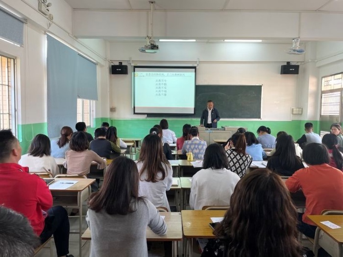 為貫徹學(xué)習(xí)黨的十九屆六中全會(huì)精神,引導(dǎo)教師立足崗位,堅(jiān)定教育信念,順應(yīng)時(shí)代潮流,打造一支高效的新時(shí)代教師隊(duì)伍。11月16日,大涌鎮(zhèn)旗北小學(xué)舉行了“轉(zhuǎn)作風(fēng),再出發(fā),開新局,爭(zhēng)當(dāng)新時(shí)代‘四有’好教師”師德師風(fēng)專題學(xué)習(xí)會(huì)。旗北小學(xué)周景照校長(zhǎng)和旗北小學(xué)全體教師一起學(xué)習(xí)了《新時(shí)代教師職業(yè)行為十項(xiàng)準(zhǔn)則》,要求教師們對(duì)照“從教不專,從教不勤,從教不實(shí),從教不端,從教不廉”五大方面進(jìn)行了自查自糾。還提醒全體教師要有“先知先覺,跟著時(shí)代走,爭(zhēng)當(dāng)新時(shí)代四有好教師”的思想意識(shí),牢記師風(fēng)師德,不踩紅線,提高政治覺悟。隨后,周校長(zhǎng)對(duì)“雙減”政策下的課后服務(wù)工作和“五項(xiàng)”管理工作進(jìn)行了階段性的總結(jié),敦促教師們調(diào)整心態(tài),認(rèn)真落實(shí),抓好班風(fēng)建設(shè),加強(qiáng)教學(xué)常規(guī)工作,要與家長(zhǎng)構(gòu)建良好的家校合作關(guān)系。