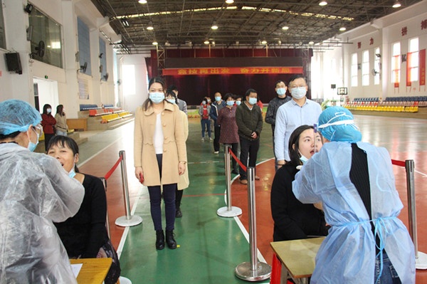演練分三個情景開展,第一個情景是以廣播講解和現(xiàn)場提問的形式開展發(fā)現(xiàn)有新冠密接者、陽性報告情況時的處置,由馬成海副校長與全體同學(xué)進行講解,分別從三個方面進行理解和掌握:當學(xué)校教職員工、學(xué)生有新冠密接者、陽性報告情況時,配合疾控中心,根據(jù)疾控中心研判,對全校封閉管理,實施對學(xué)生、老師采取科學(xué)的應(yīng)對措施。1、如果學(xué)生未在學(xué)校時,學(xué)校進行封閉管理,通知學(xué)生停止返校,留在家里等待學(xué)校的進一步通知;2、如果學(xué)生是在校學(xué)習期間,學(xué)校實施封閉管理,學(xué)生戴好口罩,留在班級等待下一步的安排;3、如果學(xué)生在上學(xué)、放學(xué)途中,則根據(jù)具體要求進行安排和布置。接著第二個情景是師生全員檢測核酸演練,演練嚴格按照要求,學(xué)生按班級輪流集中檢測,在檢測前打好自己的二維碼,現(xiàn)場進行掃碼登記、測溫、登記、檢測。檢測程序有條不紊,工作按部就班,很好地詮釋了檢測的要求和做法。最后第三個情景是學(xué)生不舒服產(chǎn)生的嘔吐物的處理方法和做法的演練,在學(xué)生不舒服產(chǎn)生嘔吐物后,學(xué)校的校醫(yī)和清潔工人嚴格按照處理嘔吐物的方法,對嘔吐物進行清理、處理和消毒工作,一件一步,認真落實。