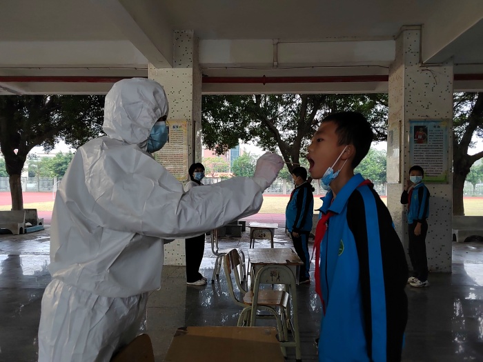 牛角小學(xué)新冠肺炎疫情防控工作遵循統(tǒng)一領(lǐng)導(dǎo)、分級負(fù)責(zé)、反應(yīng)及時、措施果斷、依靠科學(xué)、加強(qiáng)合作的原則,成立疫情應(yīng)急處置演練領(lǐng)導(dǎo)小組,組織、指導(dǎo)、檢查、督促疫情應(yīng)急處置演練工作的開展。在本次演練活動中,以學(xué)校接到阜沙鎮(zhèn)疾控部門通知,張三同學(xué)為新冠肺炎密切接觸者,通報學(xué)校后進(jìn)行相關(guān)應(yīng)急處理為背景,共有模擬啟動應(yīng)急響應(yīng)、配合開展流行病學(xué)調(diào)查、組織人員核酸采樣、組織管控對象轉(zhuǎn)運(yùn)隔離、校園封閉封控后的管理五個場景。在演練中牛角小學(xué)接到通知后,學(xué)校校醫(yī)立即穿戴防護(hù)服到密接學(xué)生班級,引領(lǐng)學(xué)生前往隔離室,并進(jìn)行流行病調(diào)查,同時醫(yī)療保障組封控管理該班師生。此時疫情防控工作領(lǐng)導(dǎo)小組成員到會議室召開緊急會議,各防控小組積極響應(yīng)、配合,成功完成演練。